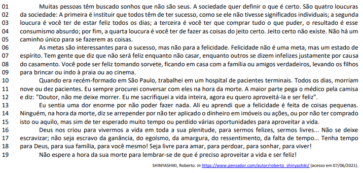 A coerência do texto seria mantida caso o sinal de dois-pontos após “tudo” (linha 16) fosse substituído por ponto final, com os devidos ajustes de letras maiúsculas e minúsculas.