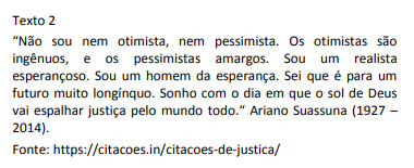 Nesse pensamento de Machado de Assis (texto 1), há um segmento de claro valor irônico, que é: