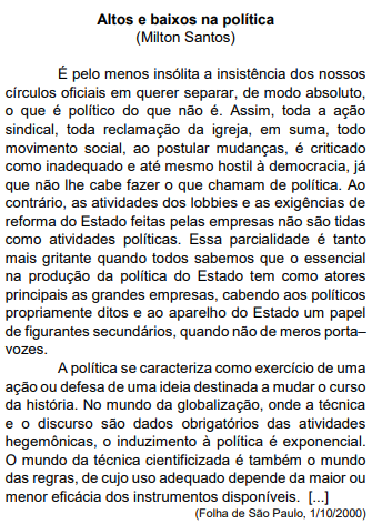 • C: afirma que os políticos não apresentam relação efetiva com o aparelho do Estado.