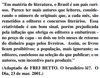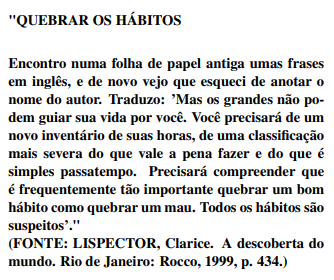 • D: Por se tratar de um gênero canônico, de circulação estritamente impressa, a crônica exige, tanto de Lispector quanto do autor que ela cita, a observância das normas ortográficas, sobretudo de pontuação.