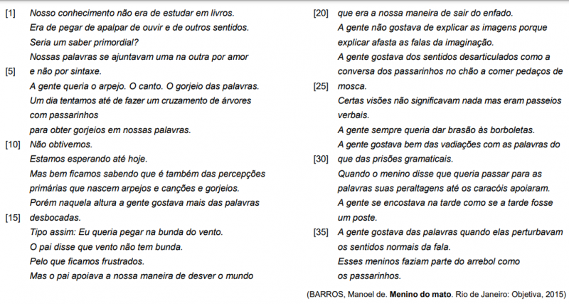 No trecho acima, o eu lírico caracteriza sua “maneira de desver o mundo” como um modo de escapar