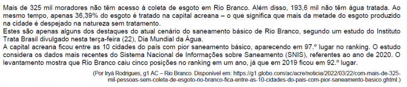2. Há moradores de Rio Branco com acesso à coleta de esgoto.