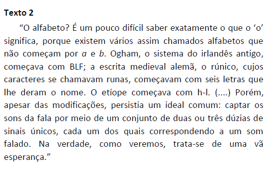 Segundo esse texto, entre as possibilidades do alfabeto, não está incluída: