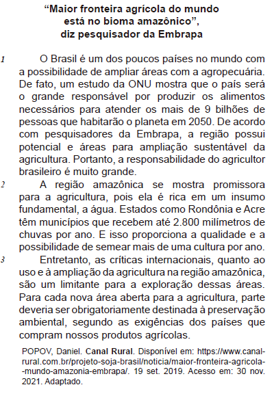 • D: liberar as áreas de cultivo de produtos agrícolas na região amazônica.