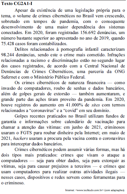Julgue os itens que se seguem, relativos às ideias veiculadas no texto CG2A1-I.