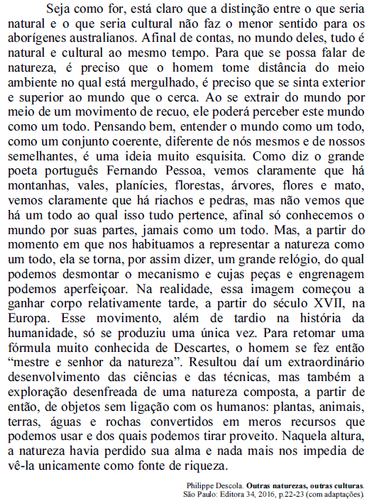 De acordo com o texto, a objetificação da natureza, e sua consequente exploração, é o resultado benéfico do desenvolvimento das ciências e das técnicas.