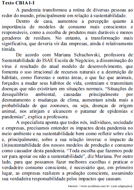 Considerando as ideias, os sentidos e os aspectos linguísticos do texto CB2A1-I, julgue os seguintes itens.