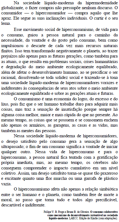 De acordo com o texto, na sociedade hipermoderna, o consumo está atrelado ao tratamento de pessoas como coisas.