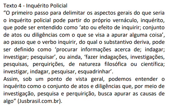 Observe a seguinte frase do texto 4: “...fazer indagações, investigações, pesquisas, perquirições, de natureza filosófica ou científica”.