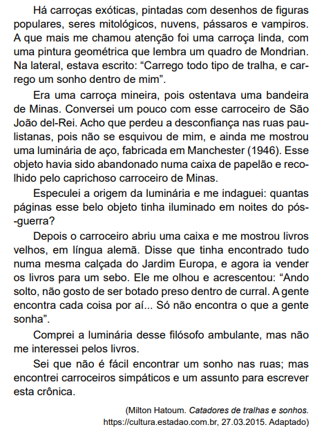 o fascínio do autor pelo carroceiro e pelos objetos residia na vantagem pessoal que alcançaria ao escrever a crônica.