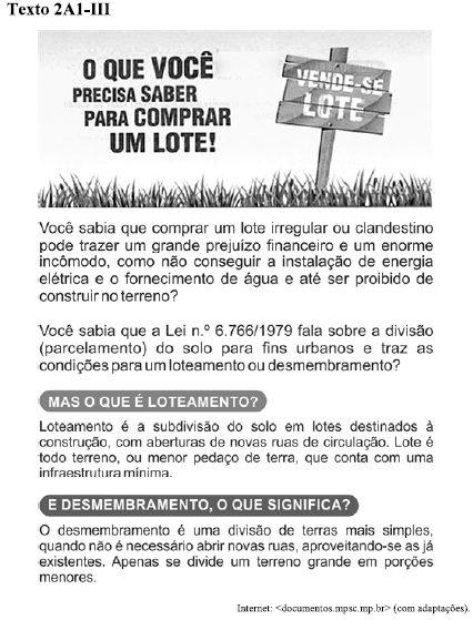 No trecho “Você sabia que a Lei n.º 6.766/1979 fala sobre a divisão (parcelamento) do solo para fins urbanos”, a conjunção “que” introduz uma afirmação cujo conteúdo é tratado como certo pelo autor do texto.