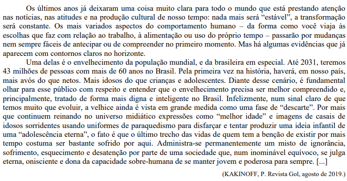 I- Entre as mudanças sociais que ocorrerão, encontra-se o envelhecimento da população mundial, processo que não é bem compreendido no Brasil.