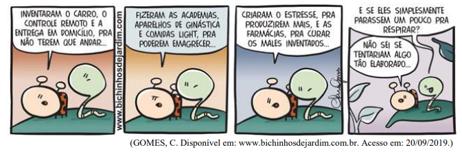 ( ) O ritmo de vida do homem e as comodidades hodiernas constituem foco da crítica de Joaninha e Mauro, personagens da tira.