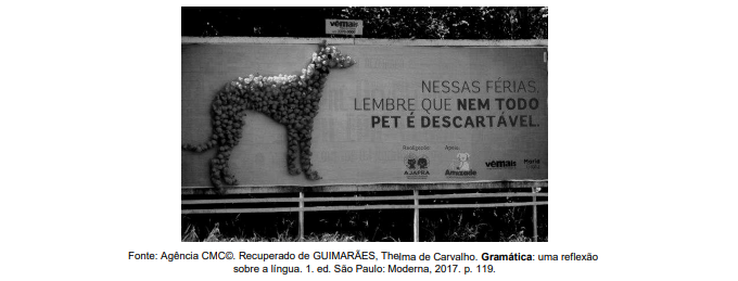• D: A partir da palavra “PET”, empregada no anúncio e associada à ilustração de um animal preenchido por garrafas PET, pode-se inferir a mensagem principal pretendida pelo produtor.