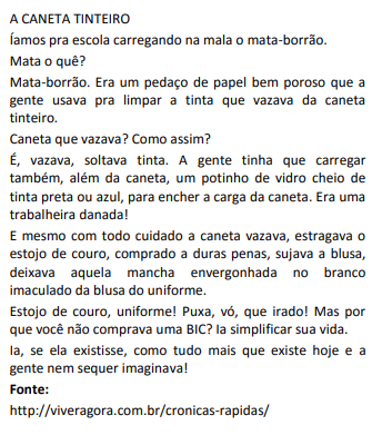 Tipo textual é um conceito que se refere às estruturas linguísticas dos textos. O texto "A CANETA TINTEIRO" é predominantemente: