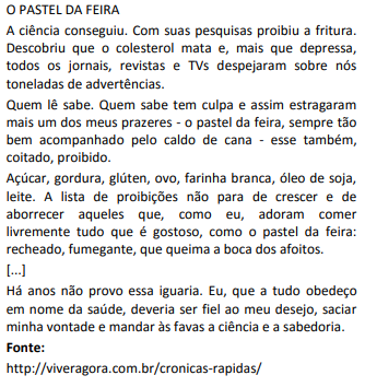 • A: foi fiel ao seu desejo e provou o pastel da feira.