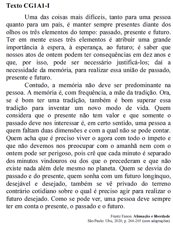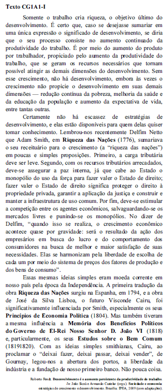Depreende-se do segundo e do terceiro período do último parágrafo do texto CG1A1-I que